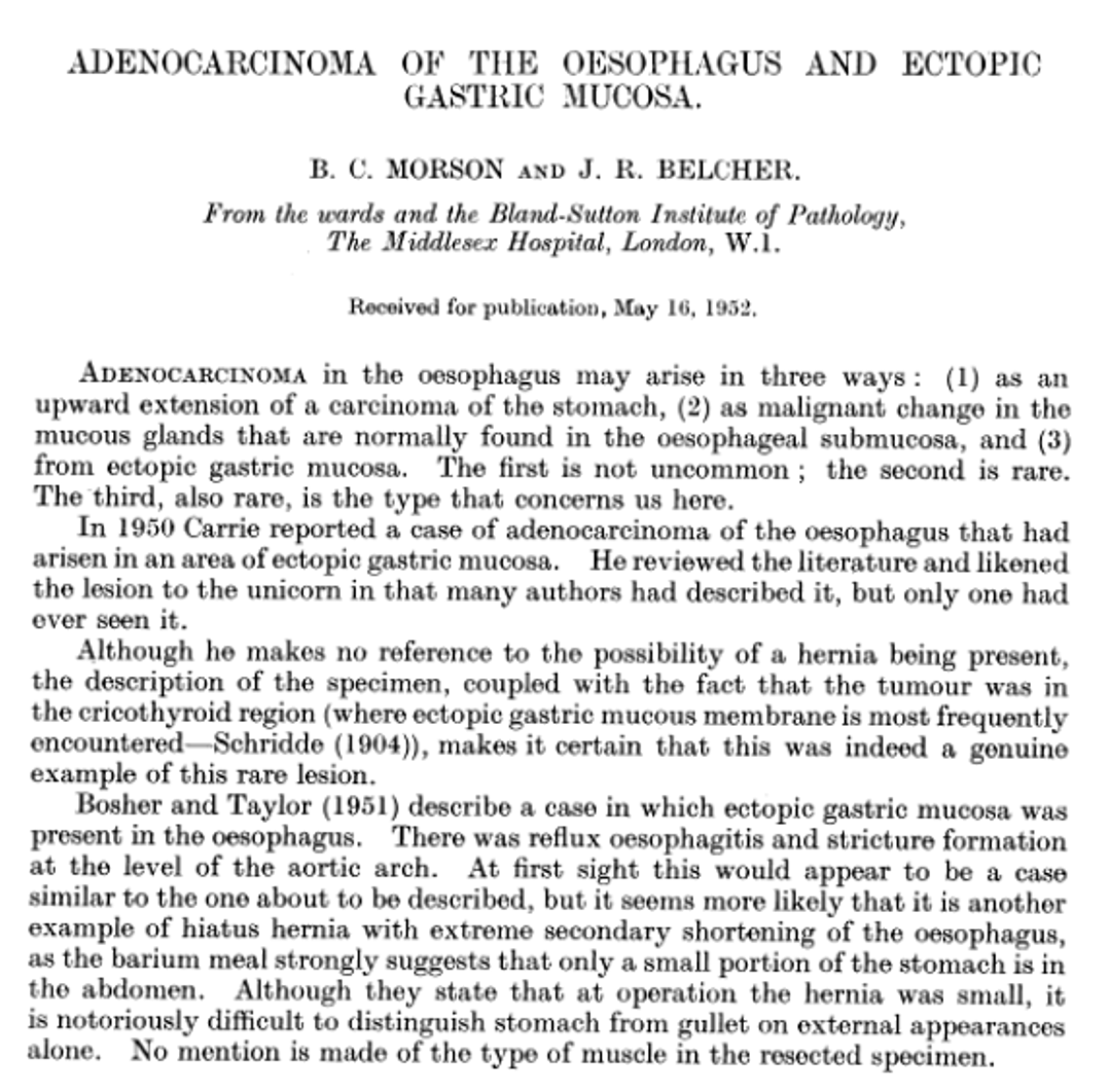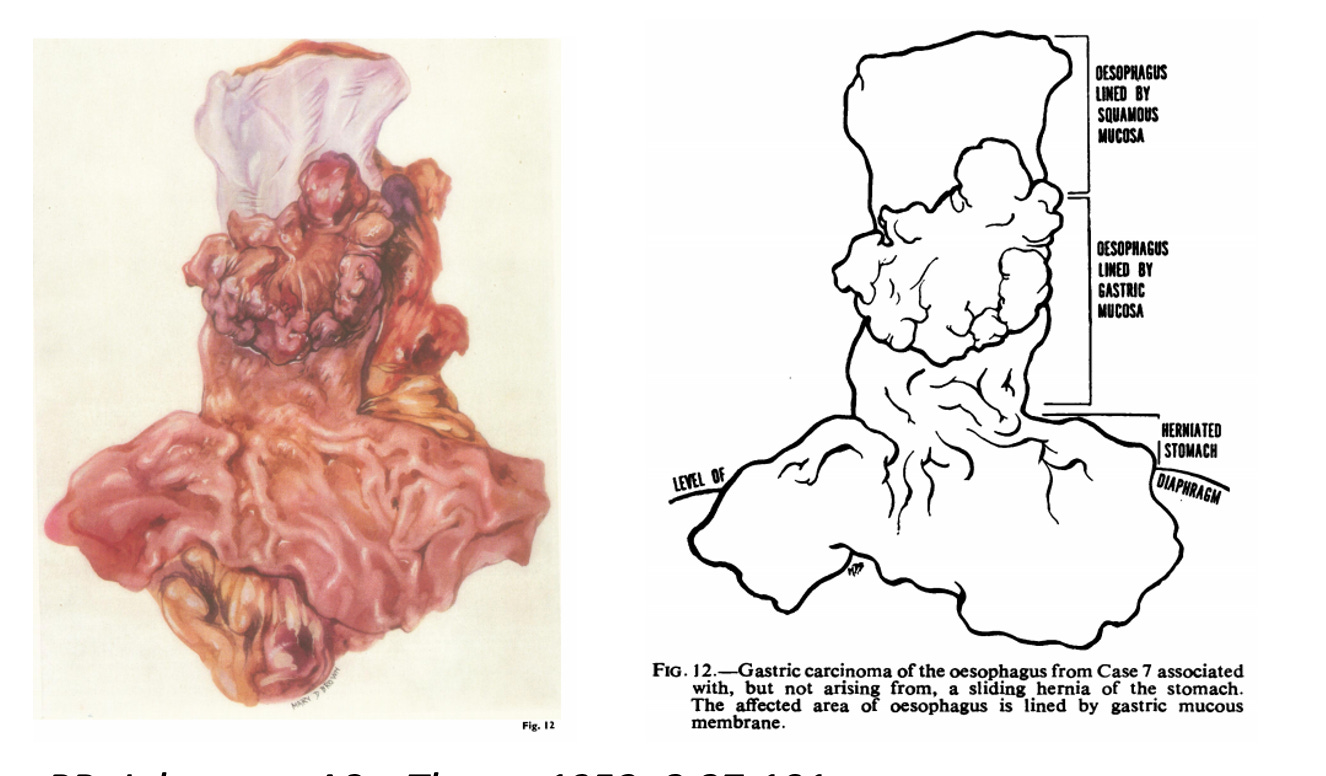 He believed this was a congenital abnormality….a stomach that had crept upwards. It took other researchers, Philip Allison and Alan Johnstone, to prove in 1953 that this was actually the oesophagus itself….transformed.