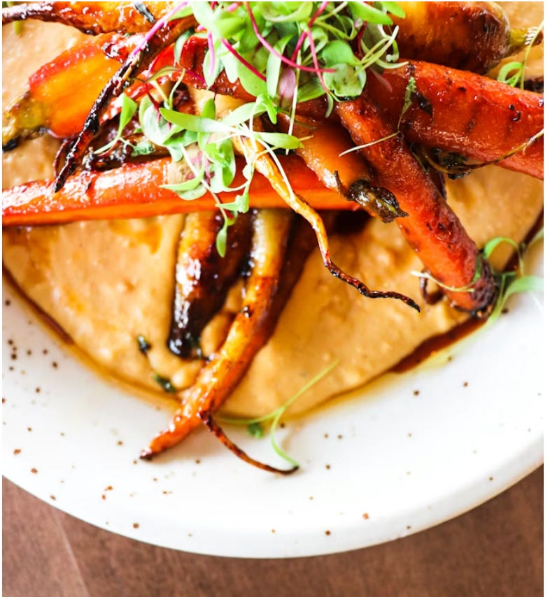 Carrots deliver beta-carotene and fibre. Hummus brings chickpeas; one of the most nutrient-dense legumes on the planet.
