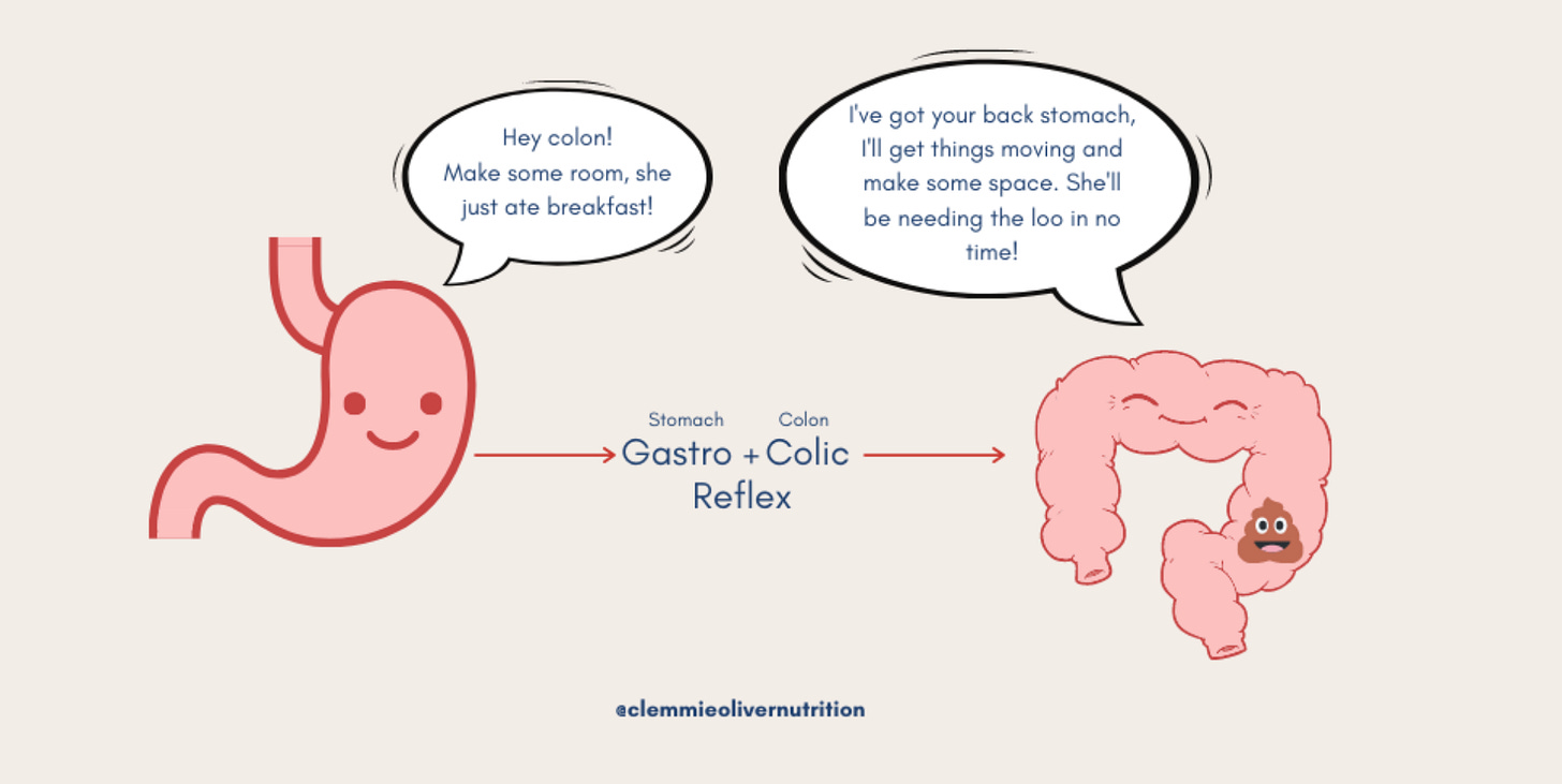 Then add coffee. A study found that caffeinated coffee stimulated colonic motor activity 60% more than water and with a magnitude similar to eating a full meal.