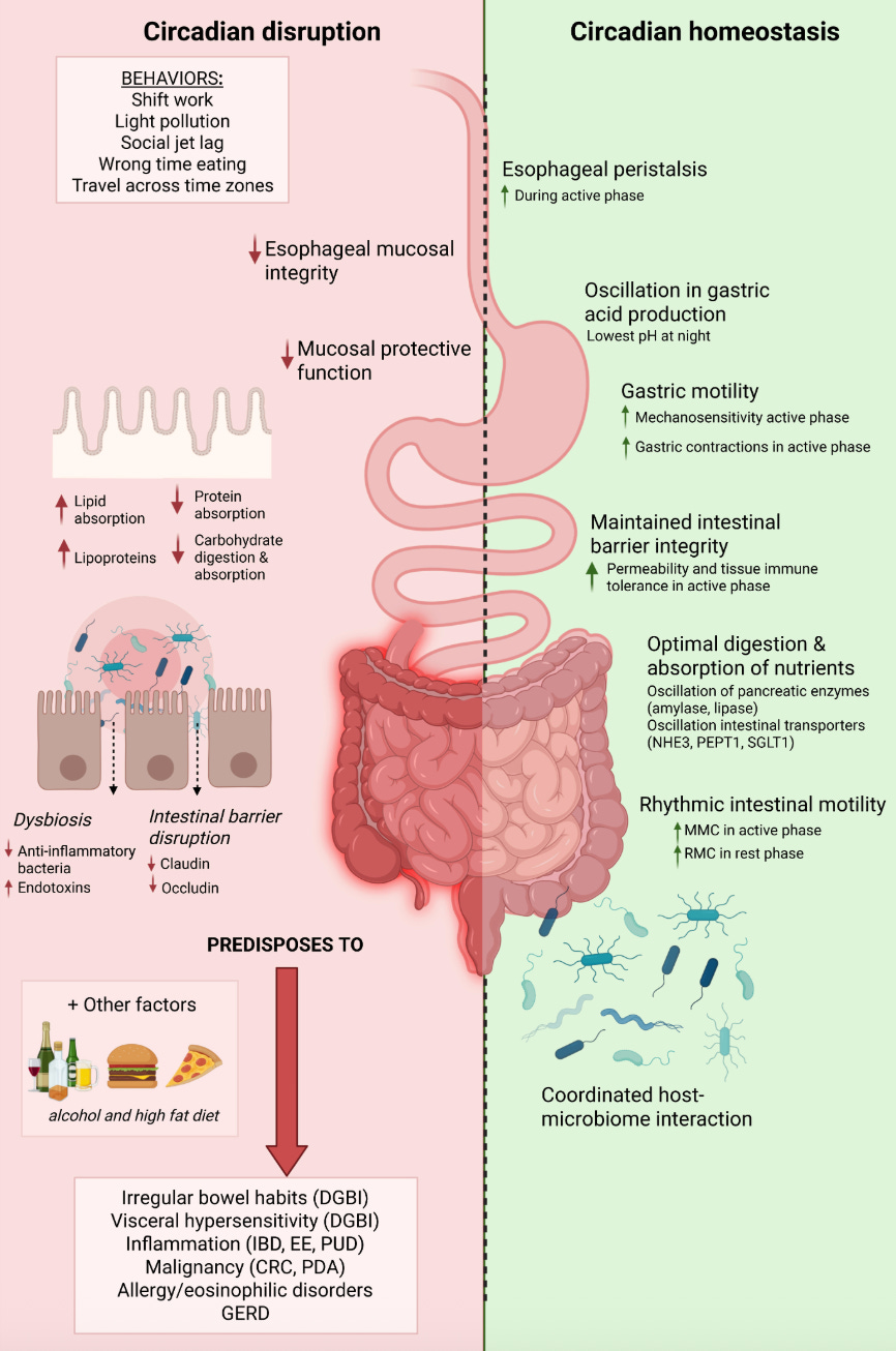 Duboc H, Coffin B, Siproudhis L. Disruption of circadian rhythms and gut motility. J Clin Gastroenterol. 2020;54(5):405–414.